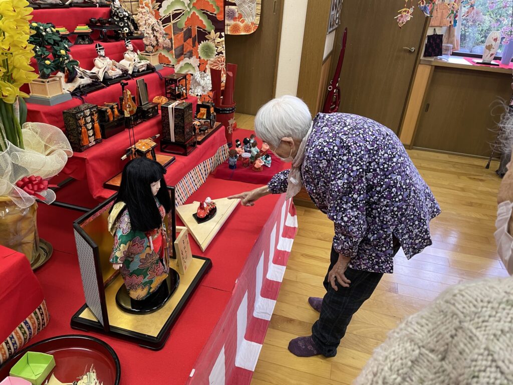 ひな人形や飾りを見ながら、地域の方々と楽しい時間を過ごしました。