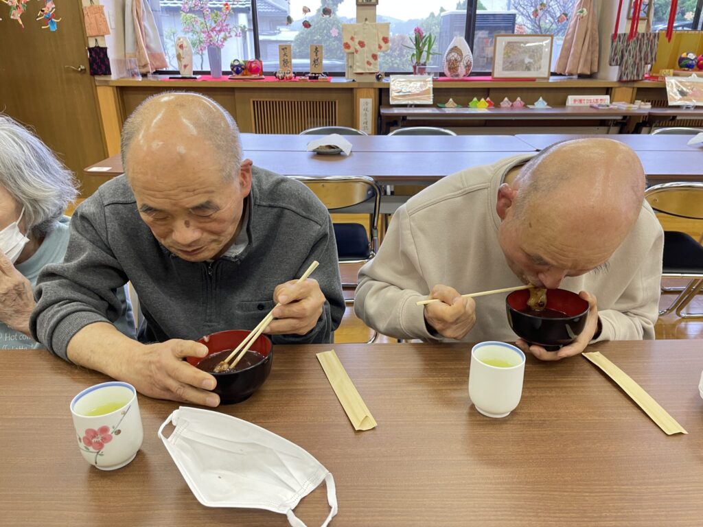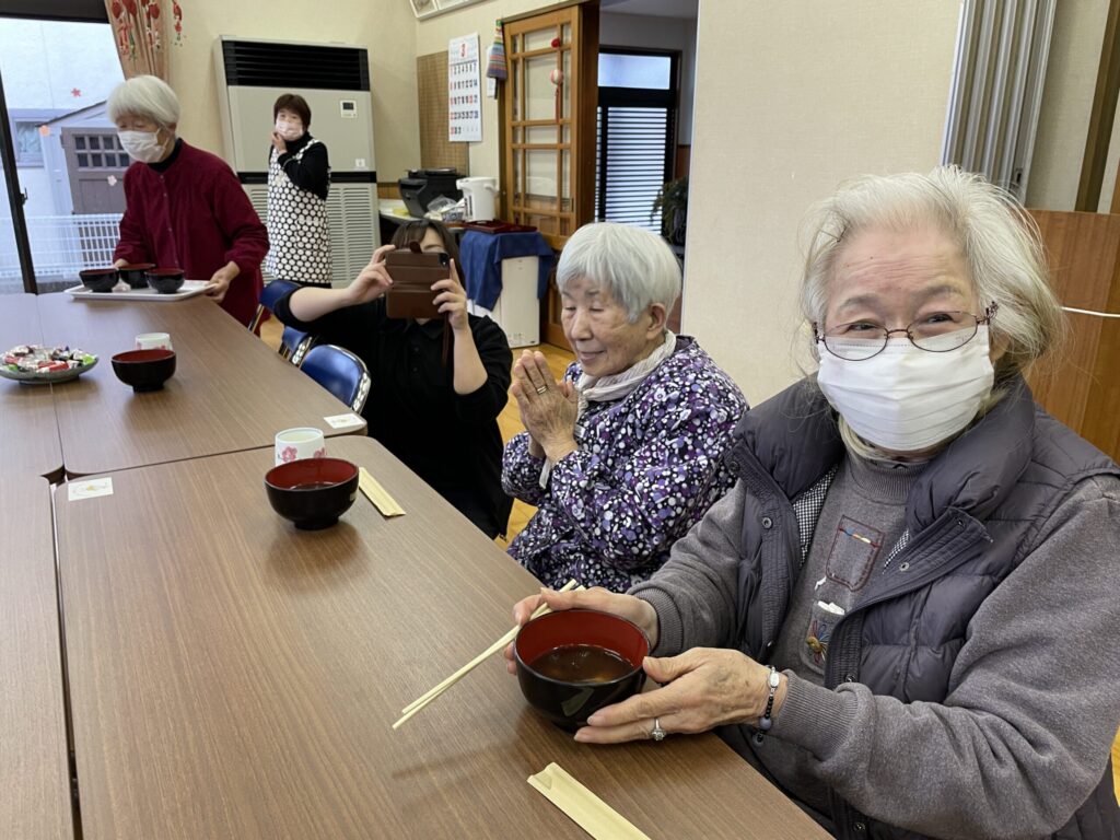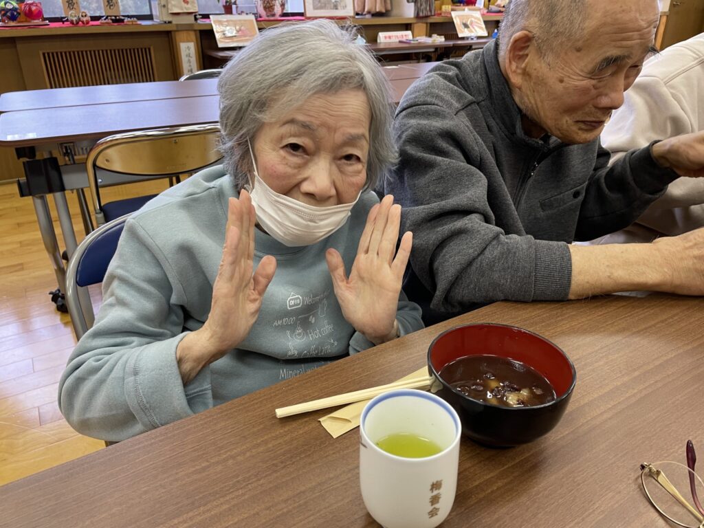 ぜんざいやおやつもご用意いただき、利用者の皆さんも「おいしいね」と笑顔に。