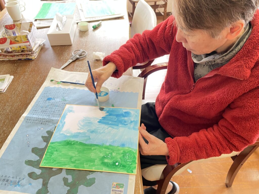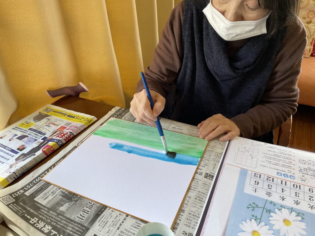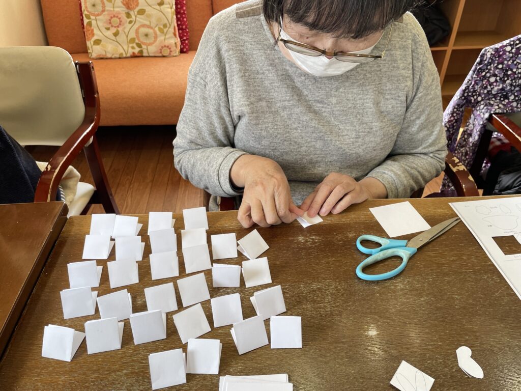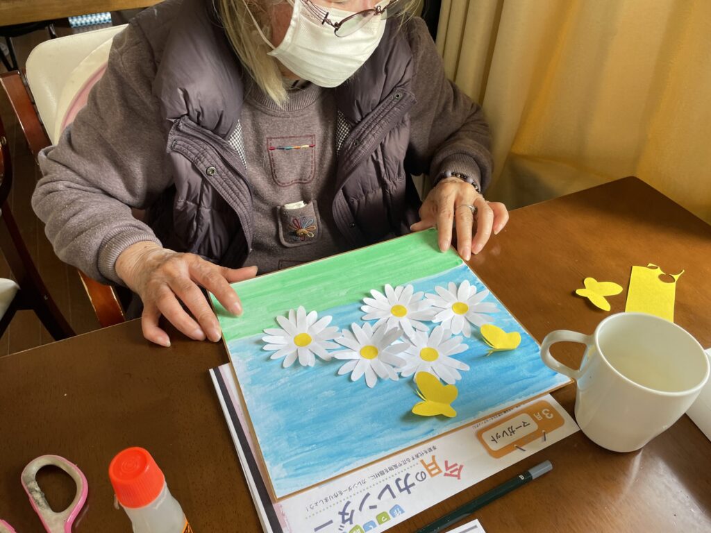 色紙に配置して貼り合わせると、春らしいやさしい雰囲気の作品が完成しました。