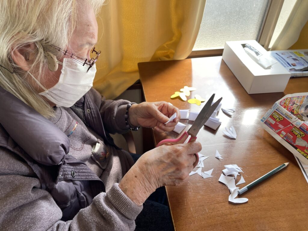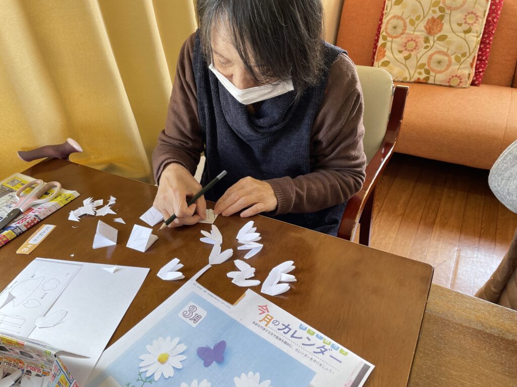 花びらを一枚ずつ丁寧に切り、形を整えながら仕上げていきます。