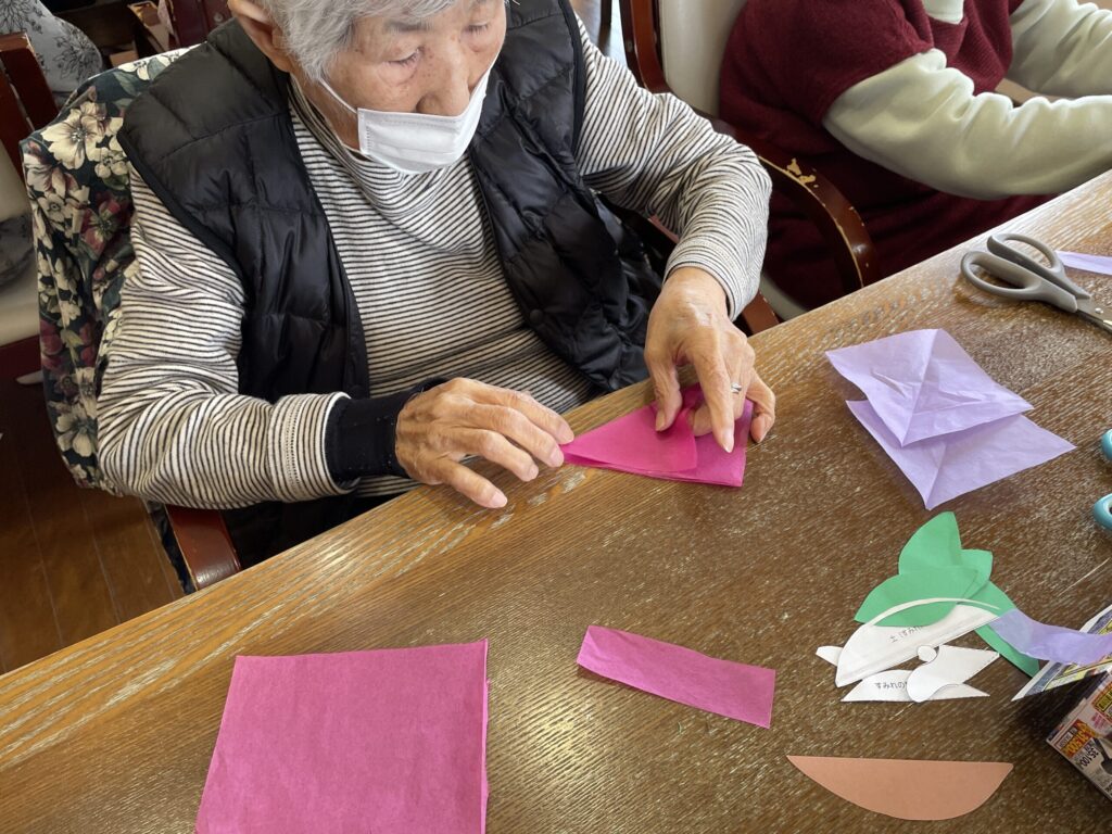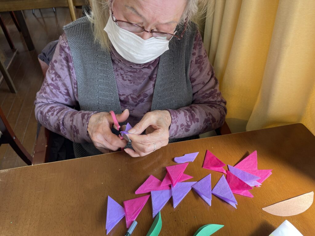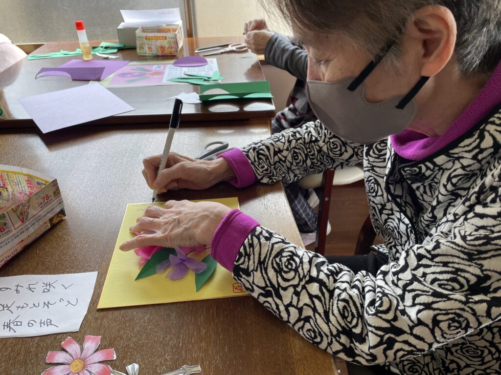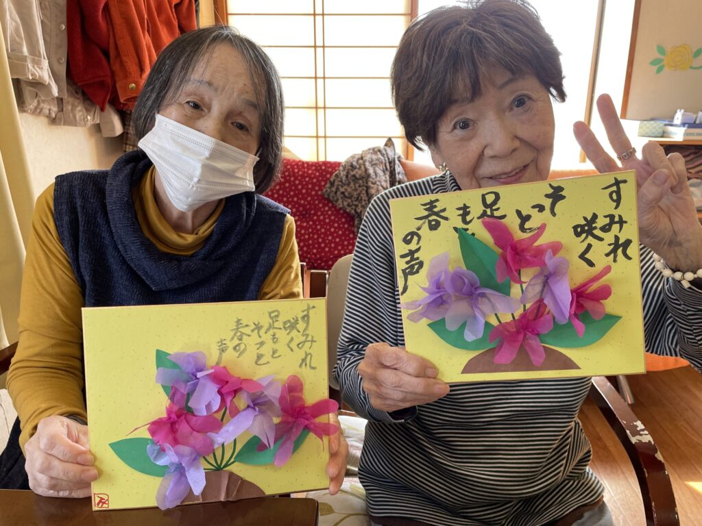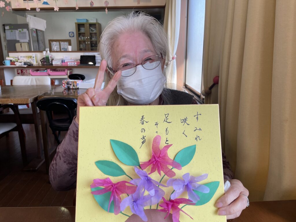 すみれの色紙飾り 2026年3月19日 最終更新日時 : 2026年3月24日 hanafukuju すみれの色紙飾りを作りました。 お花紙で花びらを作り、色紙に貼り合わせて丁寧に仕上げています。 春を感じるやさしい作品が完成しました。