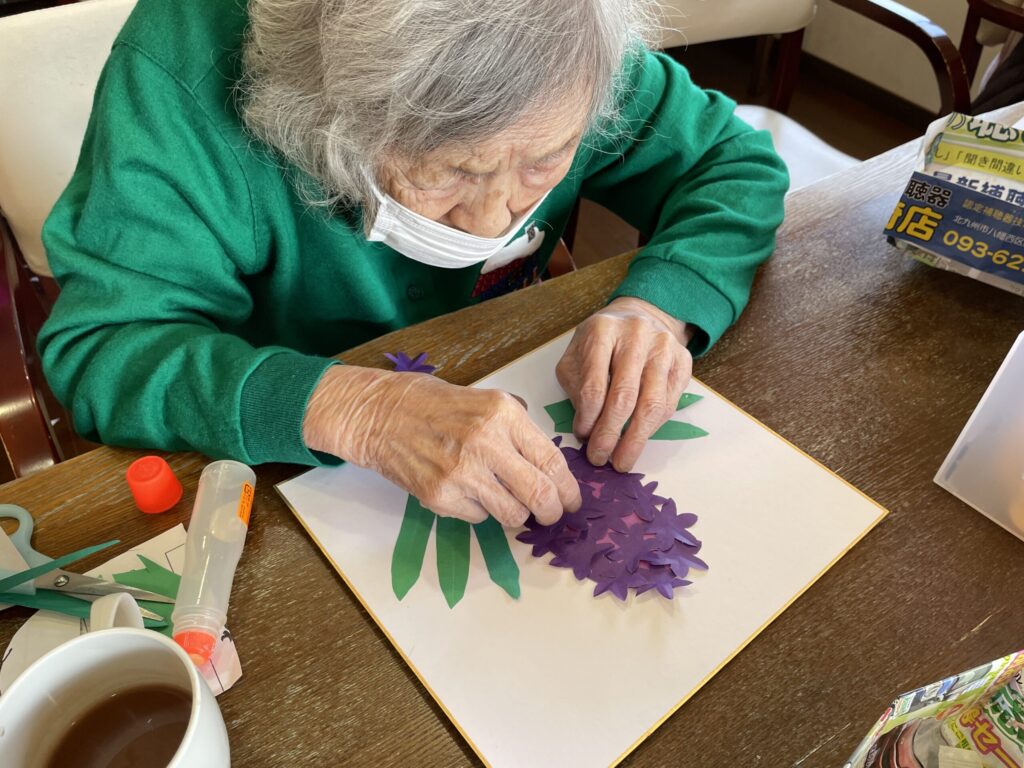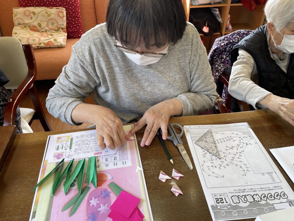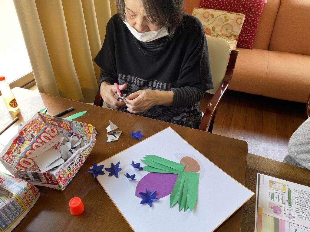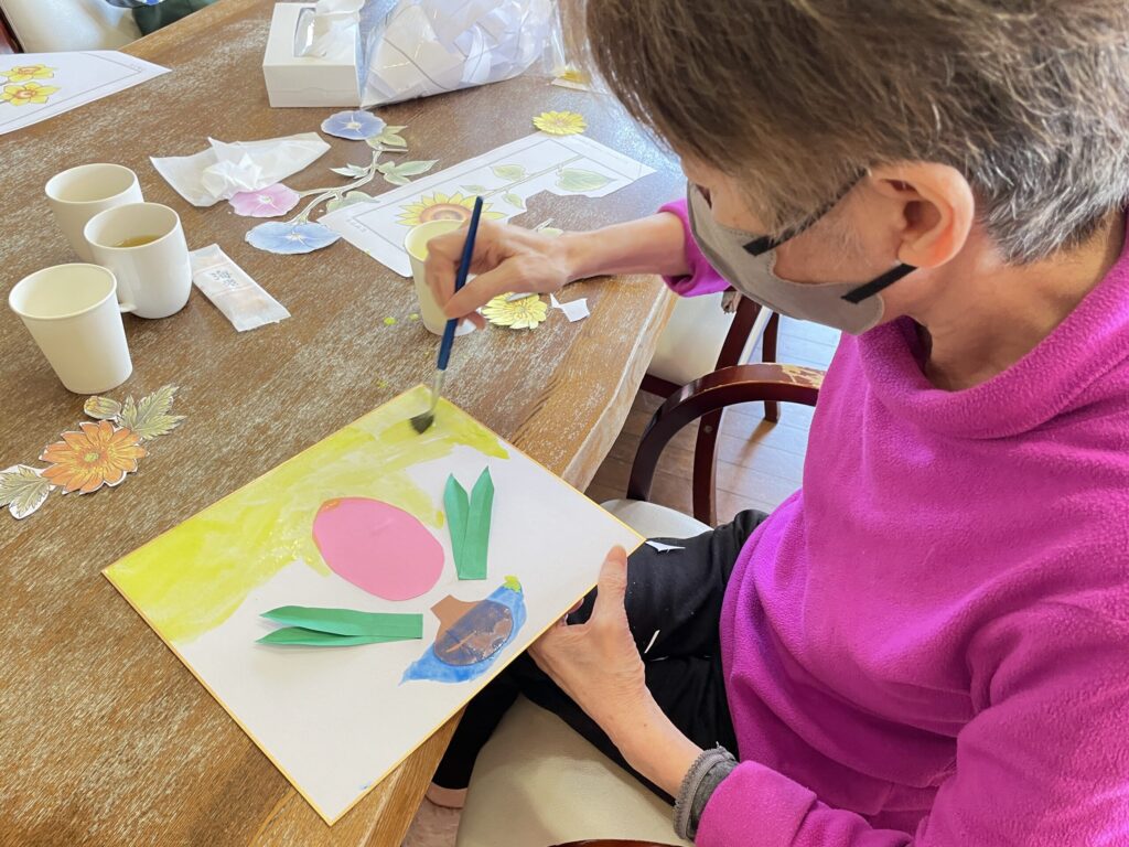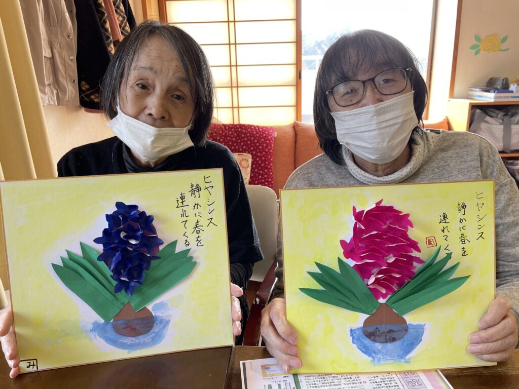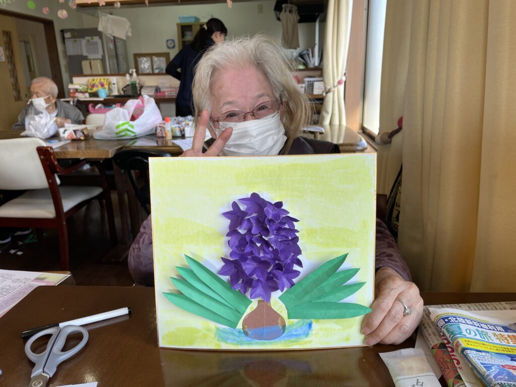 完成した作品を手に取り、「きれいね」と笑顔が見られる、穏やかなひとときとなりました。