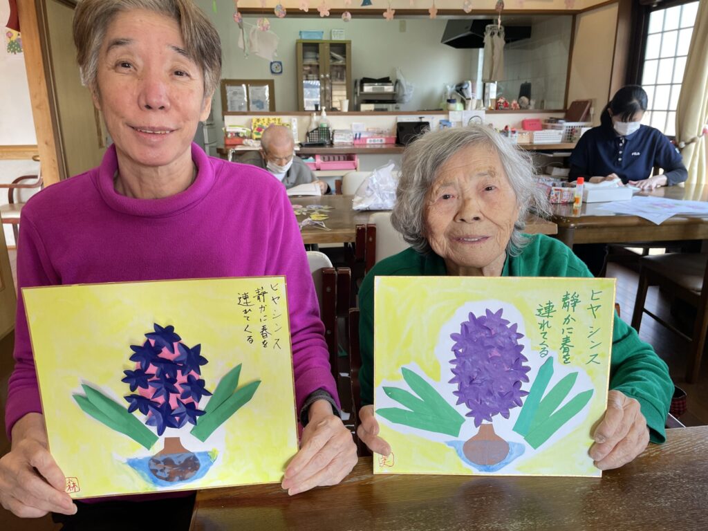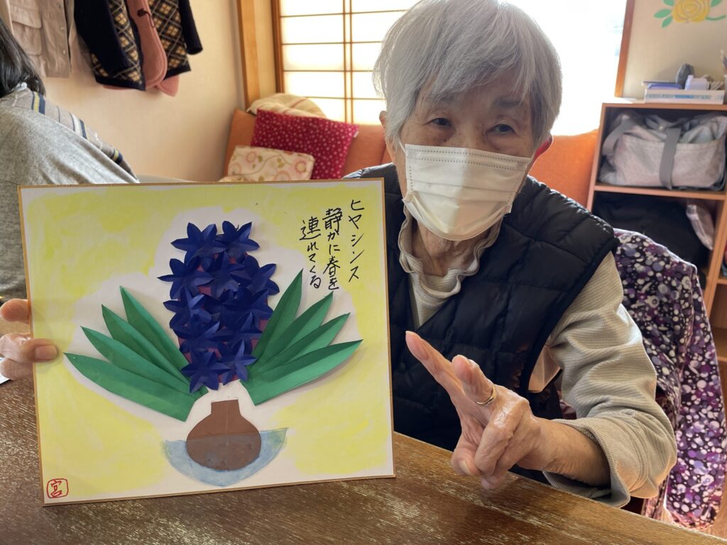 ヒヤシンスの色紙飾りを制作しました。