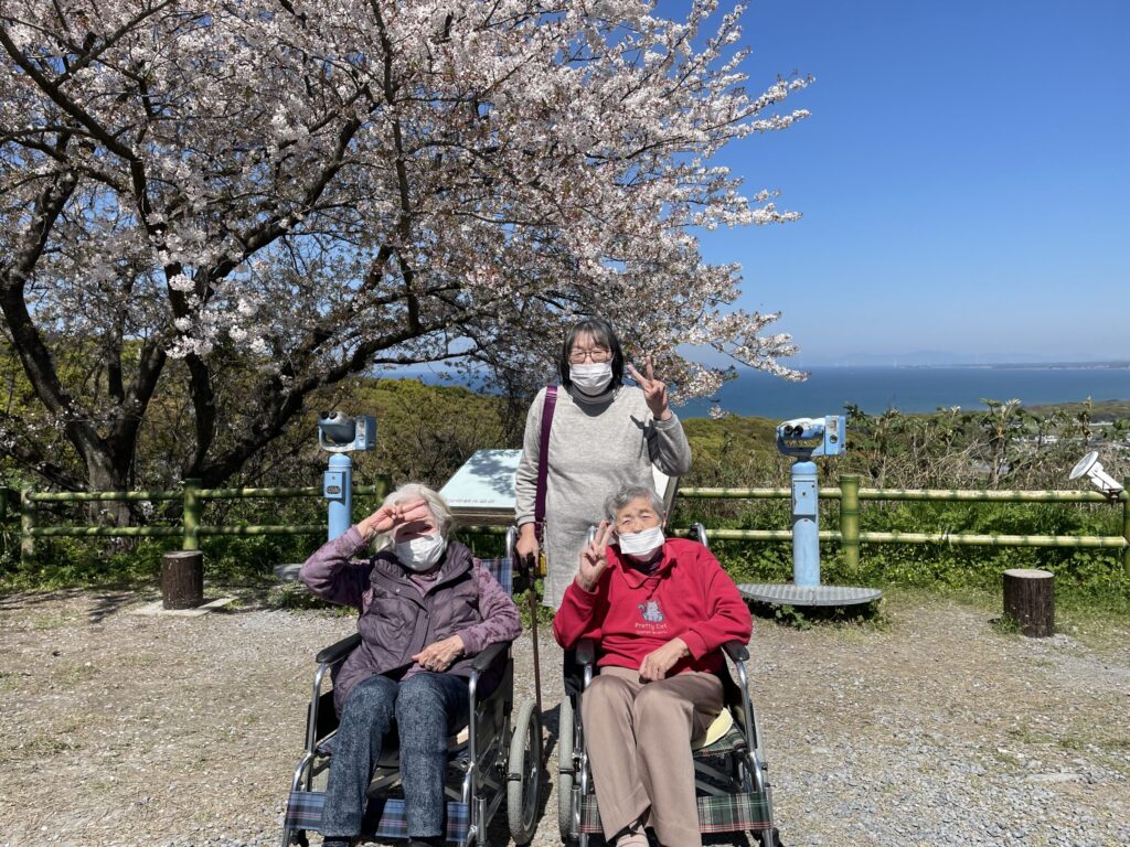 青空と桜のコントラストも美しく、心地よい時間を過ごされています。