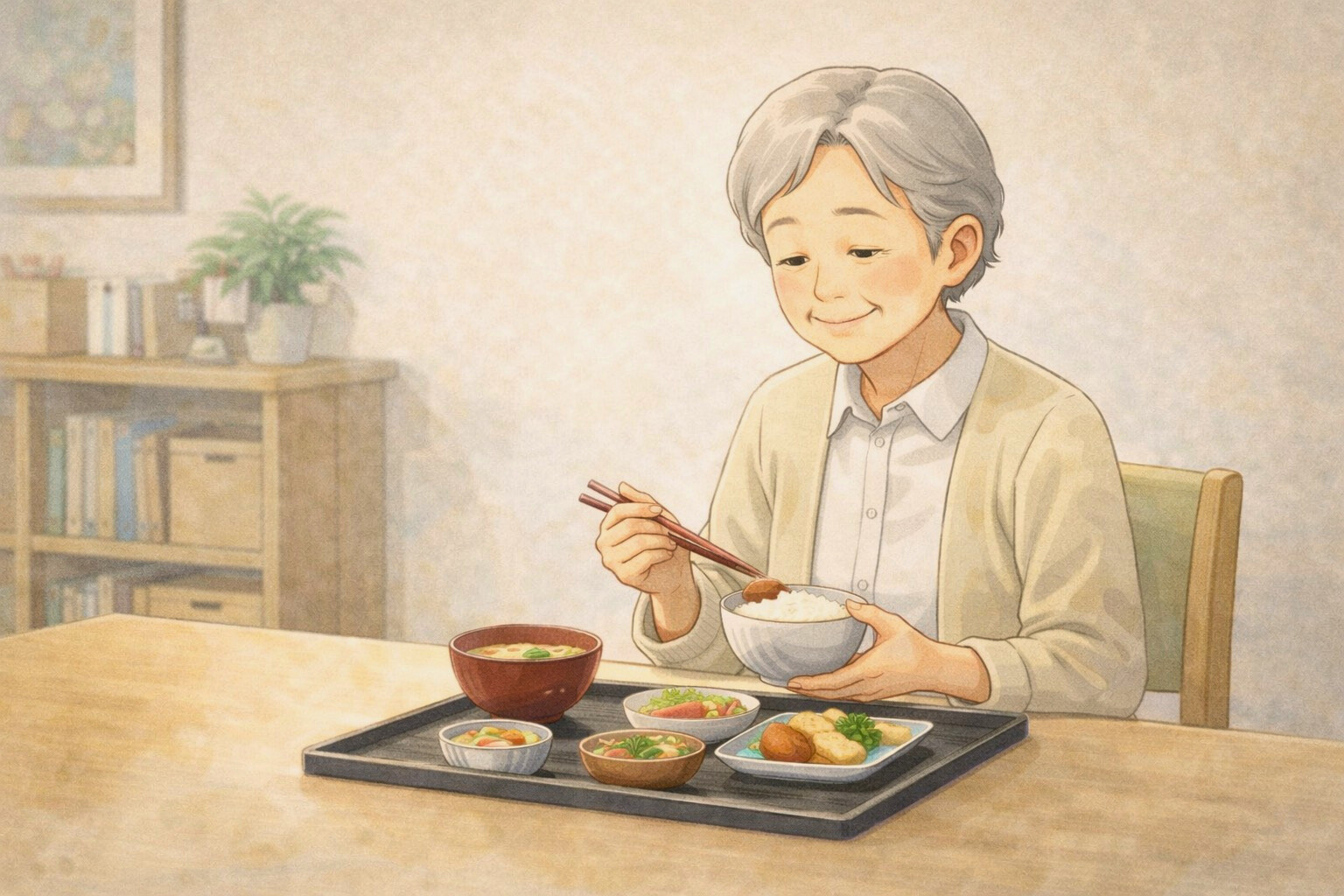 デイサービスでは、栄養バランスを考えたあたたかい食事をご用意しています。